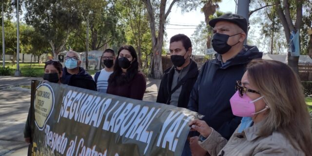 Profesores se manifestaron en la explanada de Palacio Municipal de Tijuana; exigen transparencia en asignación de plazas y manejo de presupuesto