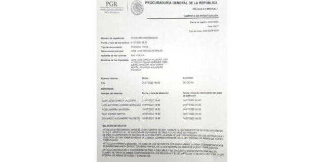 Cinco individuos fueron detenidos y presentados ante el Ministerio Público Federal, pero al final sólo se procesó a cuatro, lo que generó dudas y una investigación sobre el escape del quinto sujeto.