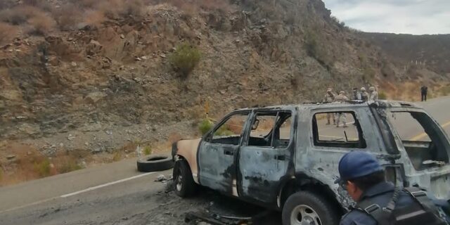 No hay muertos ni lesionados por auto incendiado que bloqueó carretera Ensenada.