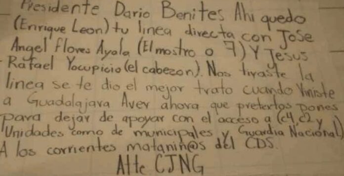 Amanece narcomanta dirigida a Darío Benítez, presidente municipal de Tecate