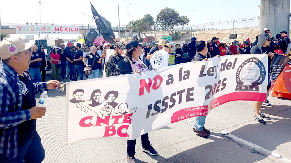 En Tijuana, los profesores se han mantenido en el plantón permanente de las instalaciones del Sistema Educativo, a la par que se llevan a cabo brigadeos informativos. “No nos hemos movido del campamento Las protestas de la Coordinadora Nacional de Trabajadores de la Educación (CNTE) han ido en aumento. En la tercera semana de huelga nacional gobierno federal sostiene que las propuestas actuales son las únicas opciones. La CNTE se mantiene firme en su demanda definitiva: derogación total de la Ley del ISSSTE 2007.