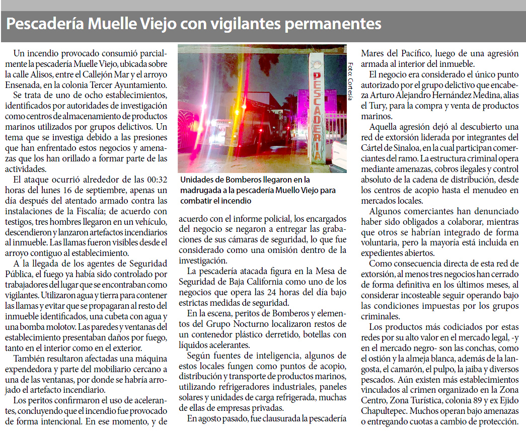 Las últimas amenazas directas del Jalisco fueron en contra de Arturo Alejandro Hernández Medina, alias el Tury, identificado como el principal extorsionador del sector pesquero e integrante del CDS, quien se encuentra fuera de Ensenada por las amenazas que ha recibido.