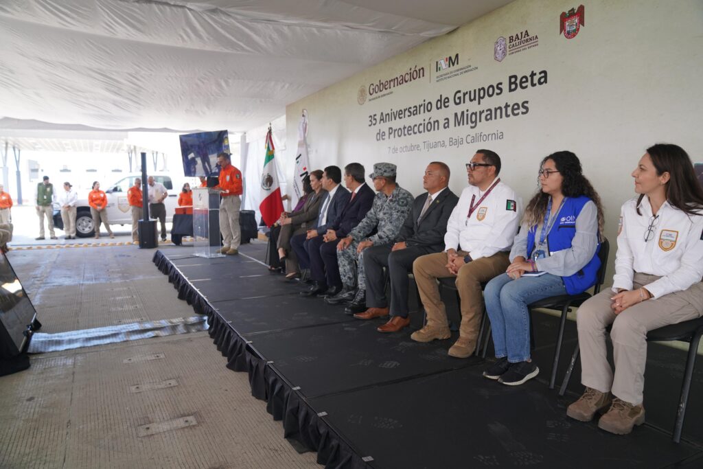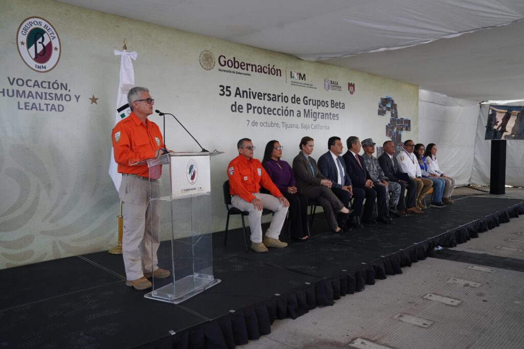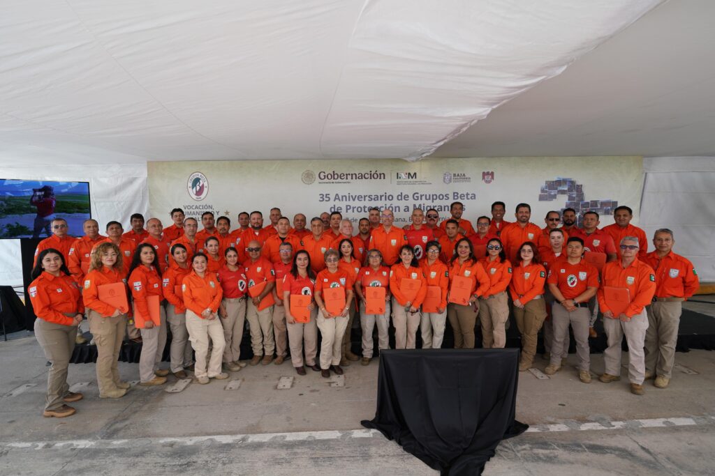 En los patios fiscales de la Garita de El Chaparral en Tijuana, se celebró el 35 aniversario del Grupo Beta, donde se reconoció la trayectoria de 40 elementos de los 22 grupos que hay en nueve estados mexicanos como: Baja California, Sonora, Chihuahua, Veracruz, Tamaulipas, Oaxaca y Chiapas.
