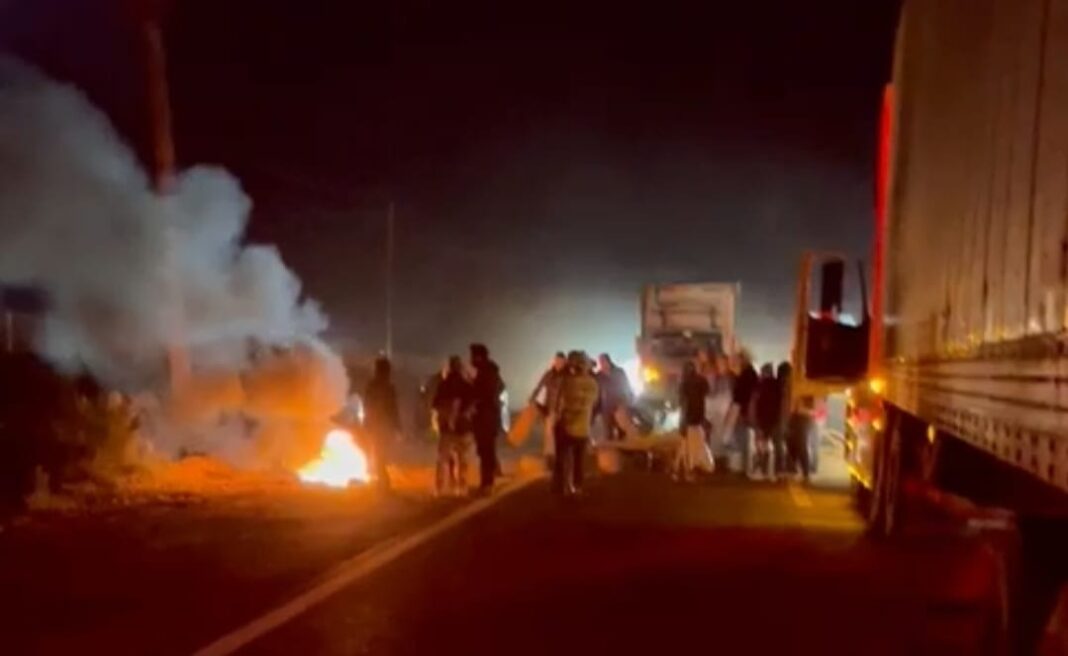 Grupos de ciudadanos mantienen desde la madrugada de este martes el bloqueo de la carretera Transpeninsular en la delegación de Camalú, del municipio de San Quintín.