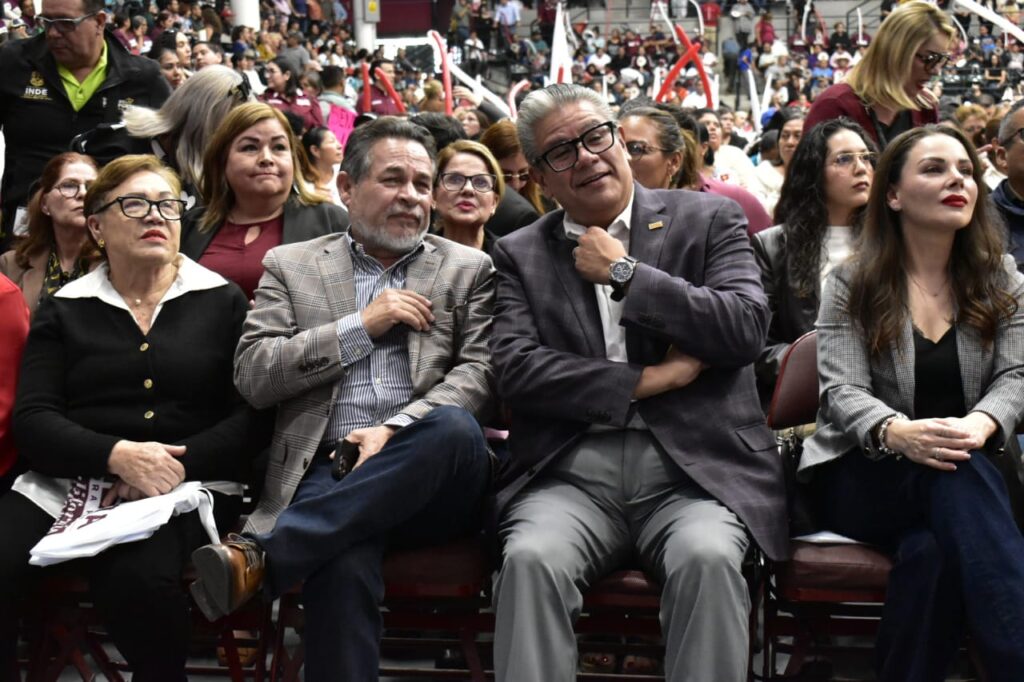 Además de los alcaldes Román Cota y Rocío Adame, de Tecate y Rosarito, acompañaron en el presídium a la mexicalense los senadores Ignacio Mier y Javier Corral; los diputados por Baja California, Gilberto Herrera y Araceli Brown; la secretaria de las Mujeres, Citlali Hernández, y la dirigente estatal de Morena, Rosina del Villar, entre otras figuras del ámbito público.