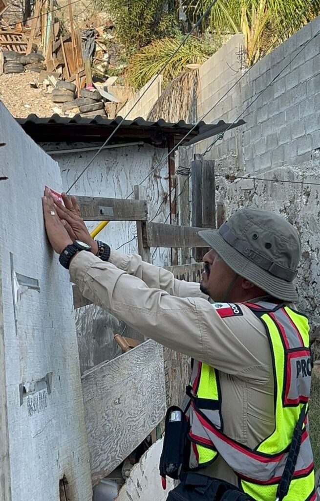 La Dirección de Protección Civil de Tijuana, colocó engomados color rojo, indicador de alto riesgo, a siete viviendas ubicadas en la colonia Vista Alamar, por encontrarse en una zona vulnerable a los fenómenos hidrometeorológicos.