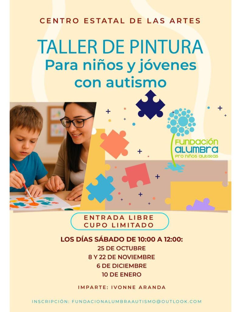 El Taller de pintura para niños y jóvenes con autismo continuará impartiéndose en CEART Tijuana los sábados 8 y 22 de noviembre, 6 de diciembre y 10 de enero de 2026; de 10:00 a 12:00 del día. La entrada es libre; cupo limitado.