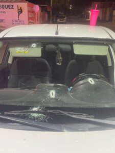 Tras la negativa, la joven le solicitó que descendiera del vehículo Nissan V-Drive de color blanco, no obstante, el hombre sacó un arma entre sus pertenencias para amenazarla y exigirle el dinero de sus ganancias; la víctima se negó y comenzaron a forcejar, para que, segundos después, el detenido accionará su pistola en repetidas ocasiones, causando daños al parabrisas de la unidad.