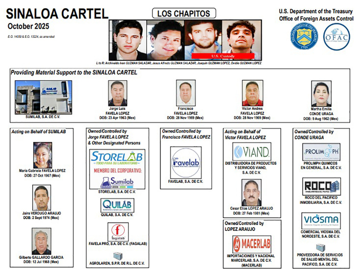 Luego de la sanción que interpusiera la Oficina de Control de Activos Extranjeros (OFAC, por sus siglas en inglés), del Departamento del Tesoro del Gobierno de Estados Unidos (USTR) el 6 de octubre de 2025, a ocho personas y 12 empresas mexicanas ligadas al Cártel de Sinaloa (CDS), especialmente con la facción de La Chapiza, en Baja California Sur surgieron múltiples contratos involucrados con los señalados entre el Gobierno del Estado de Víctor Manuel Castro Cosío y del Ayuntamiento de La Paz que administra Milena Quiroga Romero, a través del Organismo Operador del Sistema de Agua Potable, Alcantarillado y Saneamiento (OOMSAPAS), ambos gobiernos del Movimiento de Regeneración Nacional (Morena).