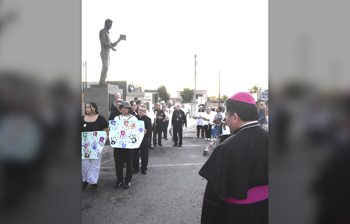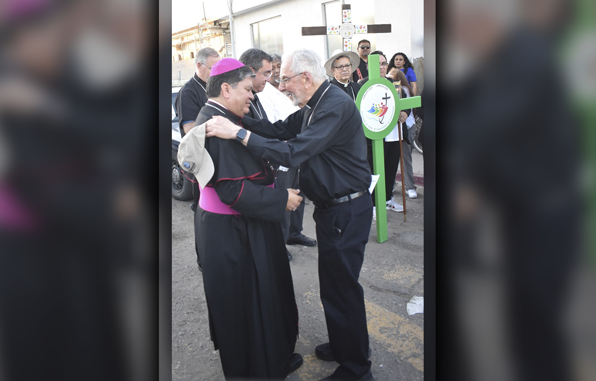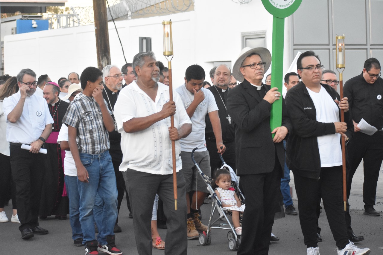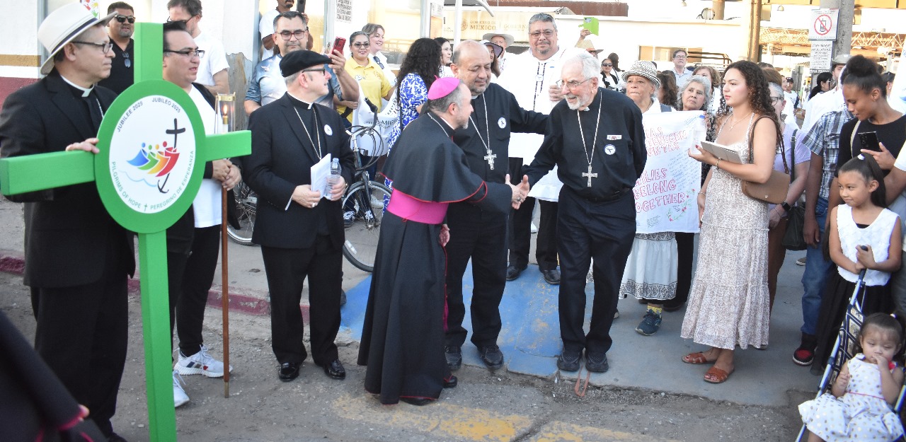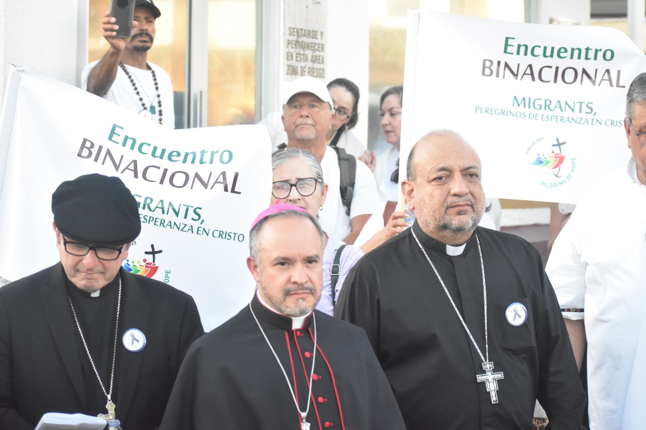 Reunidos en el Encuentro Binacional: Migrantes Peregrinos de Esperanza en Cristo, en Yuma, Arizona, cuna (1927) del legendario César Chávez, fundador de la Unión Campesina (UC) o United Farm Workers, ocho obispos peregrinaron desde San Luis, Arizona, con casi 300 asistentes que se unieron a otros 200 que los esperaban para continuar el Viacrucis Migrante, donde en la Garita Internacional en México, la Guardia Nacional y autoridades migratorias con los obispos y asistentes honraron la bandera mexicana, escucharon la 2ª. Estación con reflexión sobre el sufrimiento de ser migrantes y desaparecidos. Y acompañados de casi 50 sacerdotes y voluntarios de ayuda a migrantes de Nogales, Tucson, Phoenix, San Bernardino y San Diego California; así como de Mexicali y Las Vegas, caminaron entre signos y cantos sobre movilidad humana o migración en el mundo.