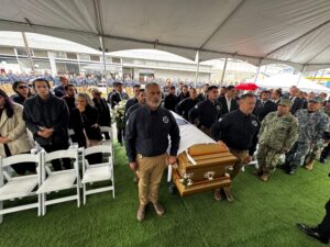El subcomandante de Playas de Rosarito Humberto Antonio Martínez Corrales fue despedido con honores en las instalaciones de zona del río de Tijuana de la Fiscalía General del Estado (FGE) luego de que un grupo de personas armadas le quitaron la vida el pasado viernes 10 de octubre a las 7 de la mañana en la colonia Buenos Aires Sur de la ciudad de Tijuana.