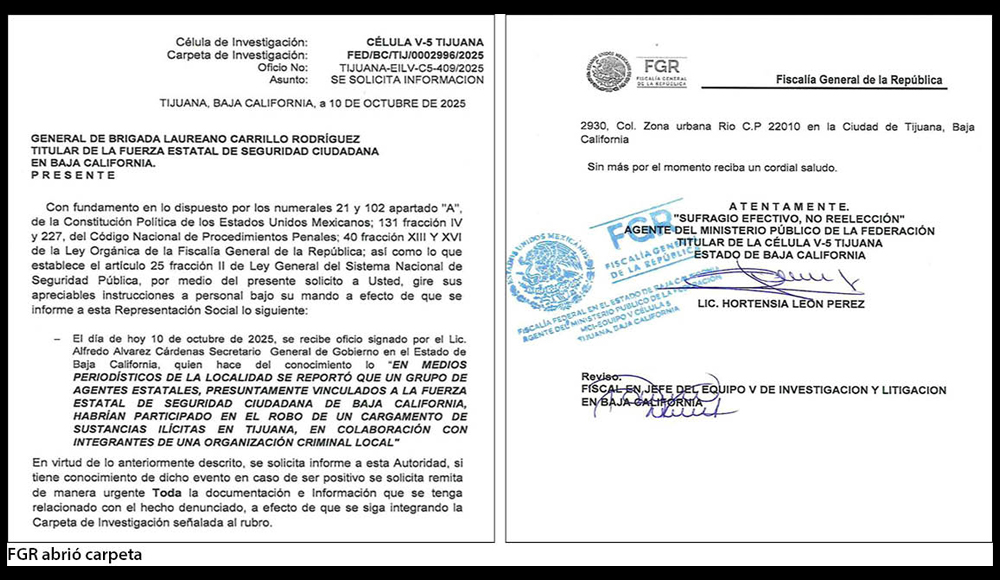 De lo único que hay certezas es que la investigación confirma que hubo un “baje” en la colonia Ojo de Agua de Tijuana, que era cocaína y que elementos de la FESC están involucrados, por lo que ahora la Fiscalía General de la República (FGR) se ha visto obligada en atender la investigación, a petición directa de la gobernadora Marina del Pilar Avila Olmeda, mediante su secretario General de Gobierno, Alfredo Álvarez Cárdenas.