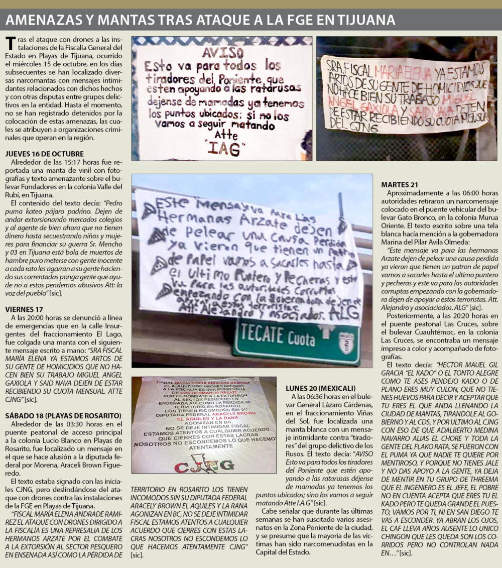 Mientras tanto, la fiscal Elena Andrade ha recibido un imponente ataque de drones a las instalaciones del grupo élite de Antisecuestros ubicado en Playas de Tijuana, el cual ha evidenciado la vulnerabilidad de las instituciones de seguridad y procuración de justicia, tanto para ser atacados como para reaccionar ante la agresión.