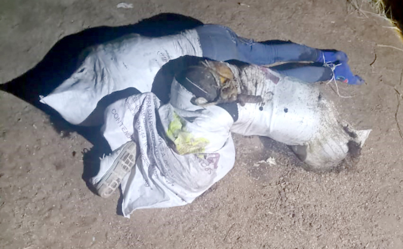Al llegar, los agentes observaron que, a cinco metros de la carretera, se encontraron dos costales con restos humanos en su interior, notificando así a las unidades correspondientes para el levantamiento de los cuerpos.