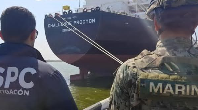 “Ahí se encontró la relación con los grupos delictivos del Cártel de Jalisco Nueva Generación [CJNG]”, señaló el titular de la FGR, quien también comentó que en el caso de Ensenada, el buque partió antes de la revisión, pero las autoridades localizaron en un almacén más de dos millones de litros de combustible ilegal.