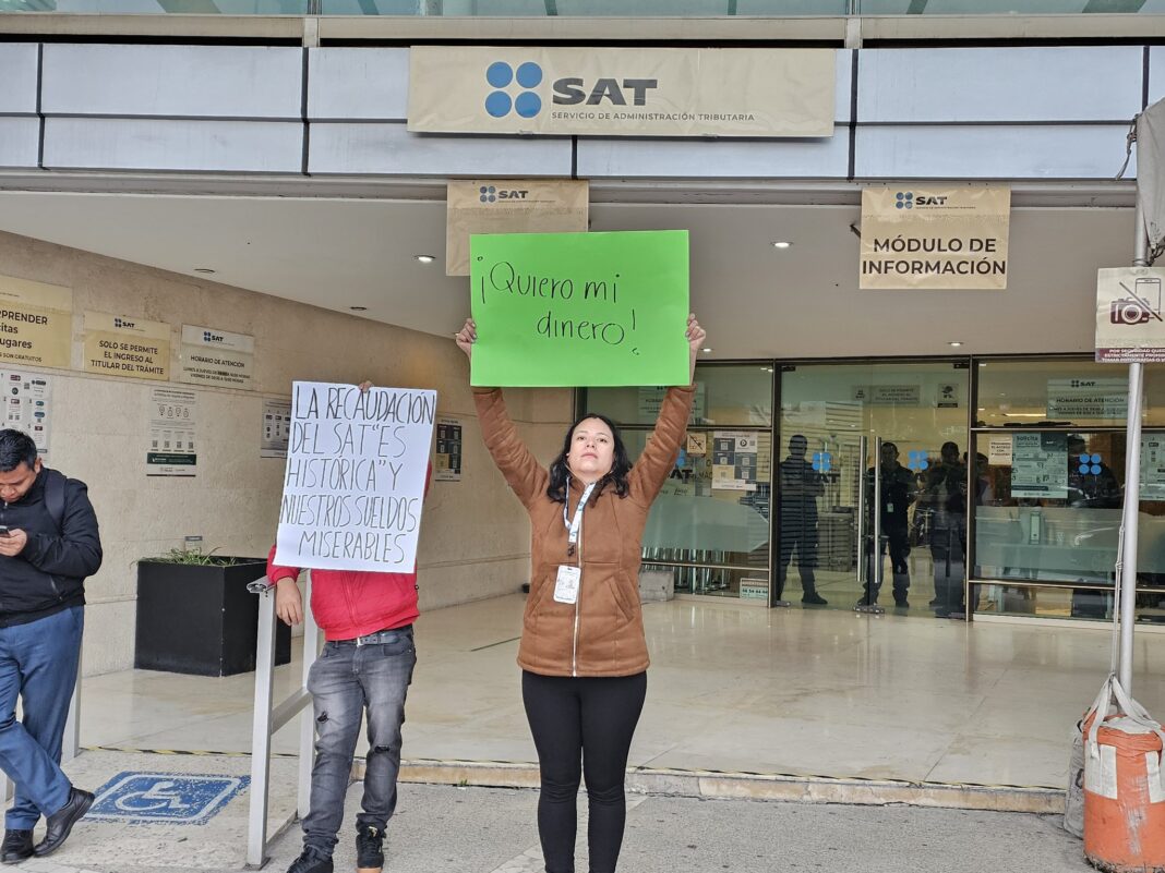 Los trabajadores del SAT también reprocharon que frente al recorte cada vez mayor de prestaciones, lo único que les habían otorgado era un ajuste anual por inflación y que eso no significaba un aumento salarial. “Exigimos un aumento, no limosnas”, indicaron, citados por Reforma.