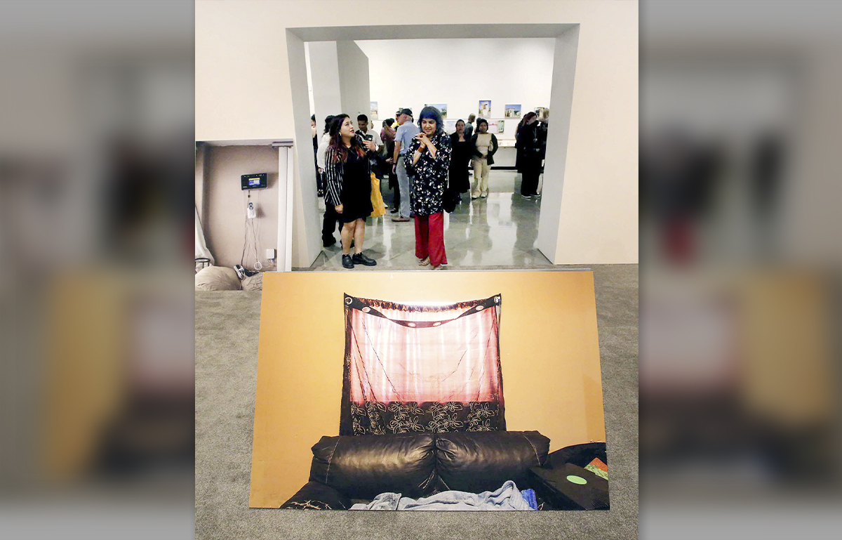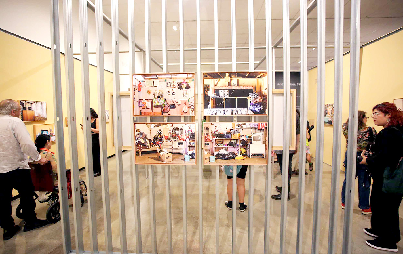 “Sí, la foto de repente puede ser como muy monótona; o sea, es una pieza bidimensional todo el tiempo, que se trata sobre un tema a lo largo de los años. Entonces, imagínate si vas a ver 180 fotos de eso, qué aburrido, ¿verdad? En la exposición hay montajes que tienen marco, otros montajes que son en vinil autoadherible, otros montajes que son sin marco, con la pura superficie rígida; otros que son como una línea del tiempo, otros vienen acompañados de toda una infraestructura como canaletas o piezas que se separan de otras imágenes que son como de registro de las acciones; las ves dentro de una vitrina porque no son piezas, sino son los registros”.