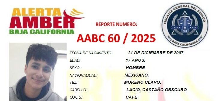 Cualquier información sobre su paradero puede ser comunicada al número de la Fiscalía: (646) 152-25-00, extensiones 2560; al número de emergencias 911, o mediante denuncia anónima al 089. Correo electrónico: [email protected]