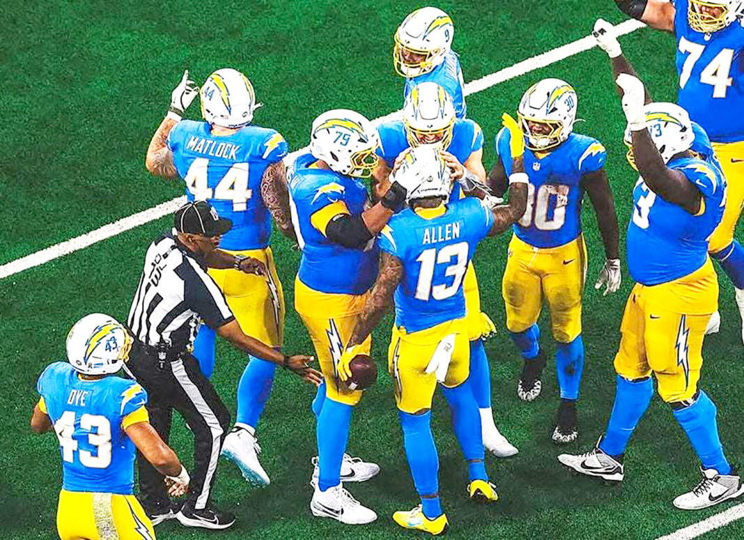 Además de contar con el resurgimiento del receptor Keenan Allen, que, en su retorno con el equipo tras su paso por los Osos de Chicago, suma 52 recepciones para un total de 539 yardas y cuatro anotaciones. Asimismo, Allen se convirtió en el jugador con más recepciones en la historia de la franquicia con 956 en su carrera.