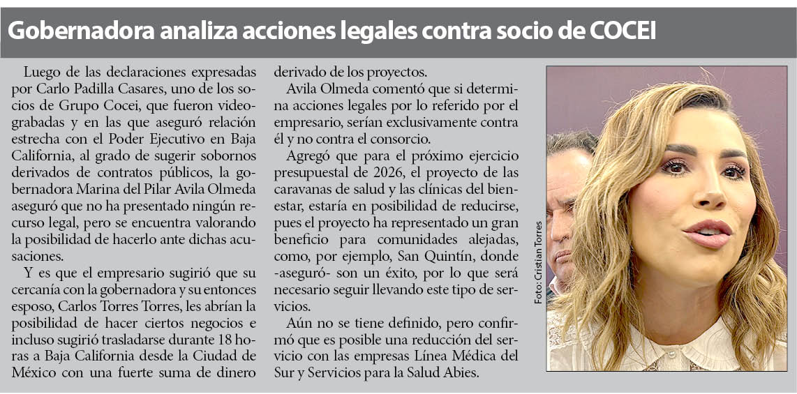 “El futuro es mejor cuando lo compartimos, por eso en Grupo Cocei pensamos que es momento de actuar globalmente partiendo desde nuestra casa México a través de la innovación, pasión y liderazgo, buscando un aprendizaje continuo en cada una de las áreas de negocio para mejorar nuestros procedimientos, habilidades y así fortalecer aún más nuestro Grupo”, refiere el mensaje de su página de internet, donde además se vincula a todas las empresas que pertenecen al grupo, de las cuales, las tres tienen contratos con Baja California: