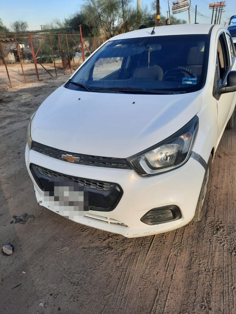 De acuerdo con la información compartida por la Dirección de Seguridad Pública de Mexicali, alrededor de las 8:30 de la mañana del pasado jueves se observó un vehículo Chevrolet Beat blanco, modelo 2018, que se encontraba boletinado por la Fiscalía General del Estado por el delito de desaparición.