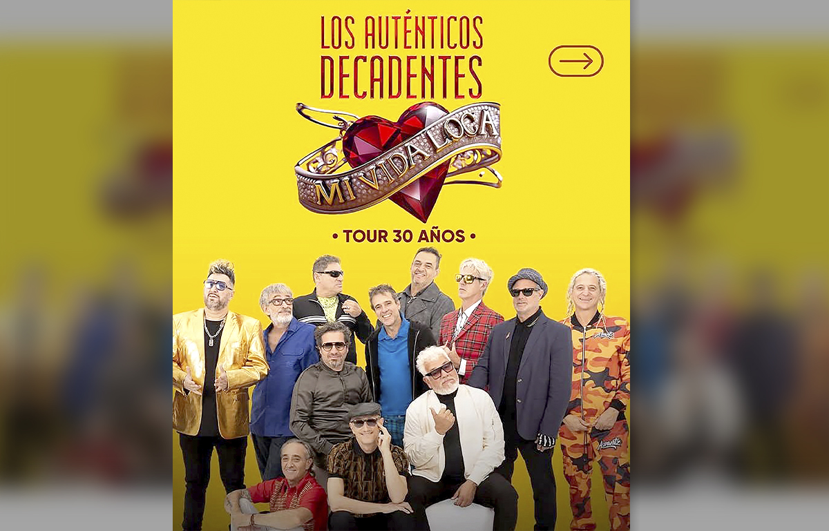 Tras 30 años de locura, con un repertorio cargado de clásicos como “Loco”, “Cómo me voy a olvidar” y, por supuesto, “Mi vida loca”, Los Auténticos Decadentes prometen llenar de energía El Foro (Antiguo Palacio Jai Alai) este sábado 22 de noviembre.