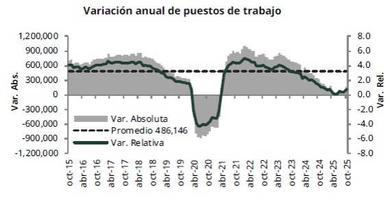 En el acumulado, enero-octubre de 2025, se crearon 550 mil 794 en el país; la cifra más baja desde 2021. Así el número de trabajadores afiliados alcanzó los 22 millones 789 mil 173.