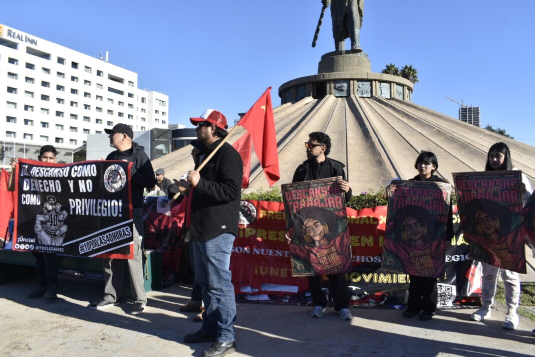 “El descanso como derecho y no como privilegio”, consignaron los participantes en una de las pancartas con las que acompañaron el acto de protesta celebrado en la glorieta Cuauhtémoc, sobre bulevar Cuauhtémoc y Paseo de los Héroes.
