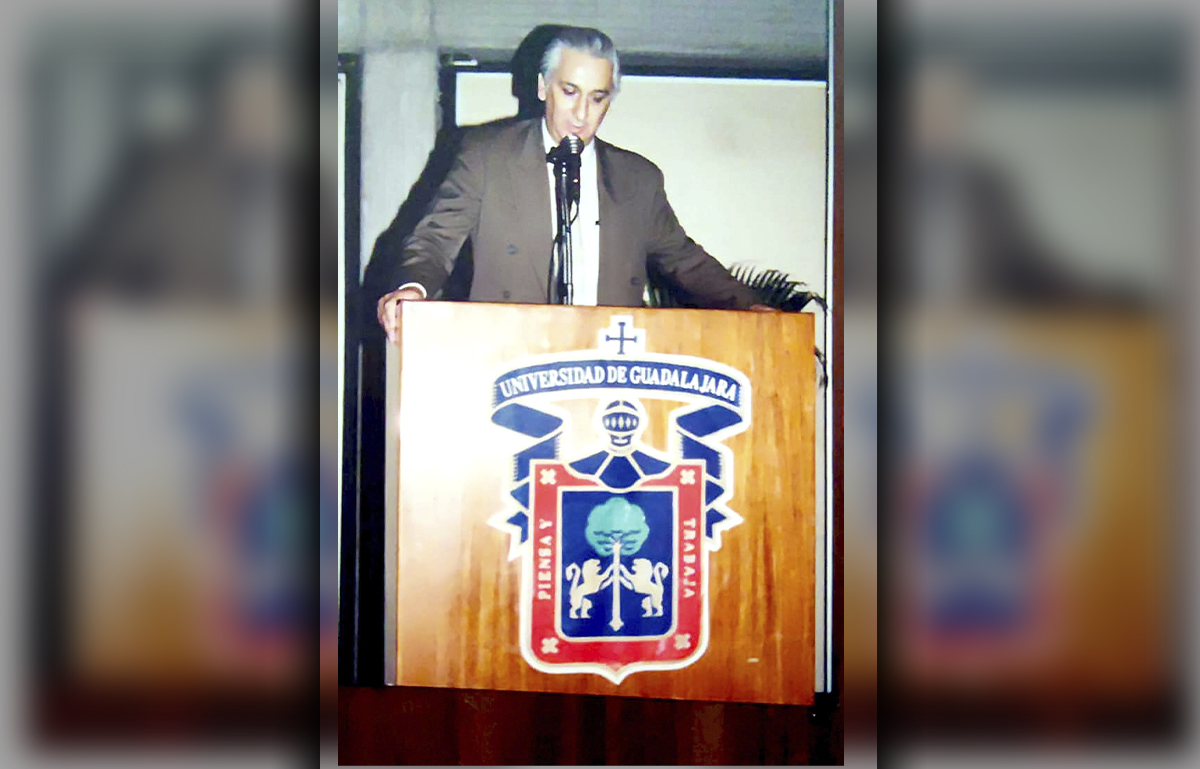 “En octubre cumplí 54 años de servicio. Empecé como maestro en la Escuela de Artes Plásticas, en la Escuela Vocacional; fui fundador de la Compañía de Teatro de la Universidad de Guadalajara, junto con su director en aquel entonces, el maestro Rafael Sandoval. Como yo estaba en la Compañía de Teatro de la Universidad de Guadalajara (yo era el subdirector), teníamos muchos eventos y en ese entonces tuvimos el teatro experimental mucho tiempo, y pues a mí me tocaba hacer las presentaciones cuando teníamos alguna ceremonia especial, pero no era como una cosa ya de trabajo rutinario, sino era esporádicamente”.