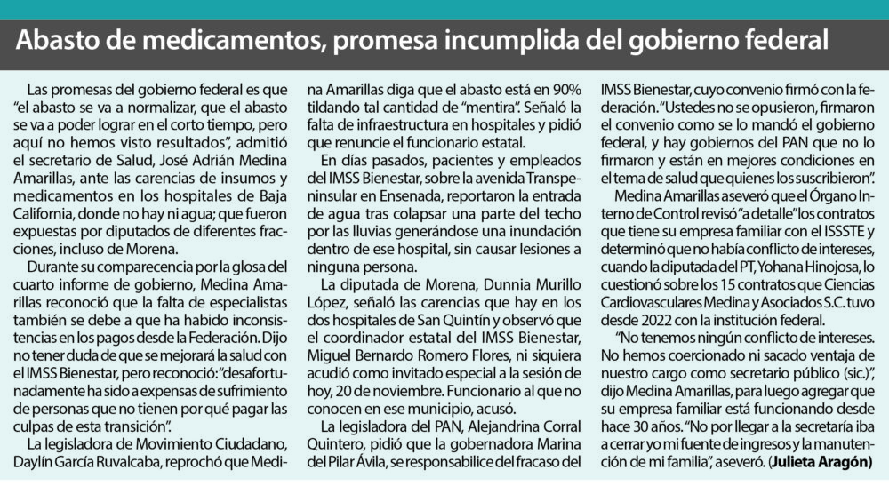 La decisión calificada como “irresponsable” e “improvisada” revela la estrategia gubernamental de “abrir un hueco para cubrir otro hueco” porque no hay una solución real a las deficiencias de personal, medicamentos e insumos que padecen los hospitales de Baja California.