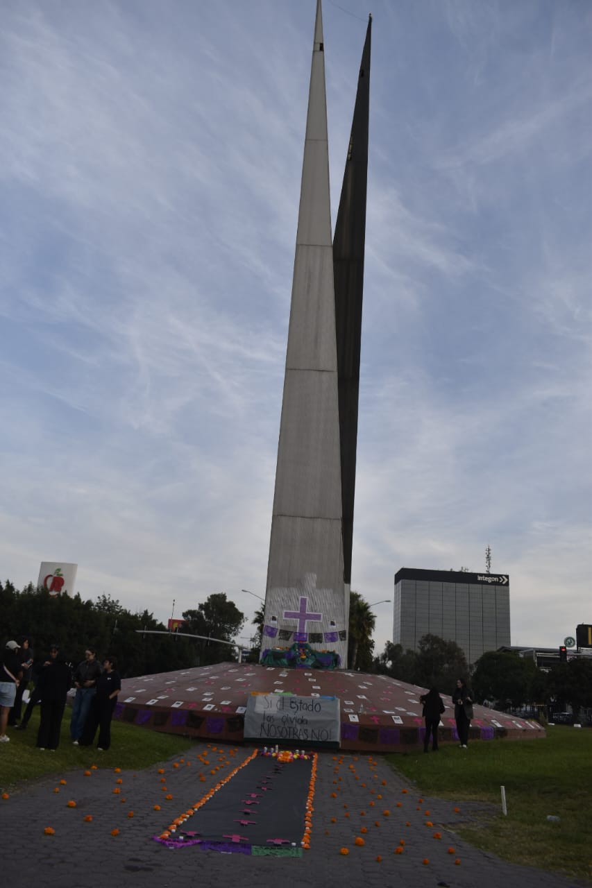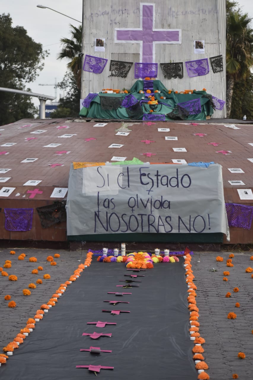 Este domingo 2 de noviembre, fecha en que se celebra el Día de muertos, integrantes del colectivo We are Women on Fire instalaron un altar en la glorieta de “las tijeras, dedicado a las víctimas de feminicidio.