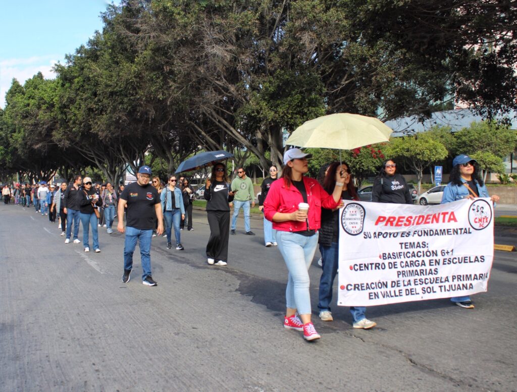 Más de 100 maestros del Comité Democrático de la Coordinadora Nacional de Trabajadores de la Educación de Baja California (CNTEBC) se sumaron este jueves 13 de noviembre al paro nacional de 48 horas, realizando una marcha sobre Paseo Centenario en la Zona Río de Tijuana, para presionar y reanudar el diálogo con el Gobierno Federal, con el fin de resolver sus exigencias, como los pagos pendientes a docentes interinos del sistema educativo federal y la abrogación de la Ley del ISSSTE de 2007.