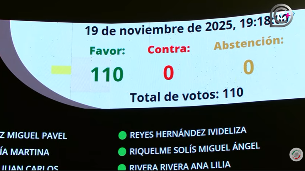 El 19 de noviembre de 2025, el Pleno del Senado de la República aprobó, de manera unánime, con 110 votos a favor, la Ley General para Prevenir, Investigar y Sancionar los Delitos en Materia de Extorsión, que establece un tipo penal único para todo el país y sanciones que van de 15 hasta 42 años de prisión.