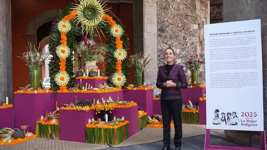 Asimismo, a través de un video, la mandataria nacional detalló que la ofrenda fue colocada por personal de la Secretaría de Cultura del Gobierno Federal y el Instituto Nacional de Pueblos Indígenas (INPI).