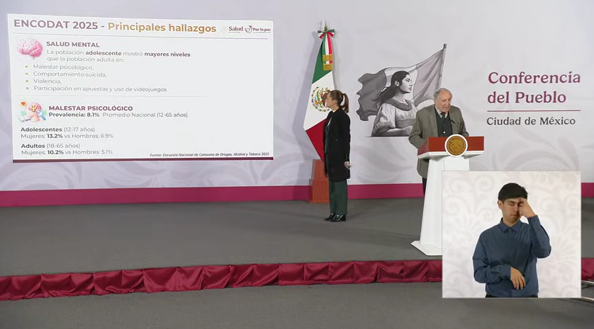 Otro hallazgo relevante de la Encodat 2025 fue el incremento en el uso de vapeadores entre los jóvenes, cifra que se duplicó al pasar del 1.1 por ciento en 2016 al 2.6 por ciento en 2025. Además, el estudio evidenció que la población de 12 a 17 años concentra mayores vulnerabilidades en materia de salud mental, con un comportamiento suicida superior al observado en adultos.