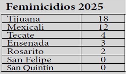 Baja California registra un incremento en feminicidios en 2025. Al corte del 25 de noviembre, suman 39 casos, superando las cifras alcanzadas en 2024, que ascienden a 38.
