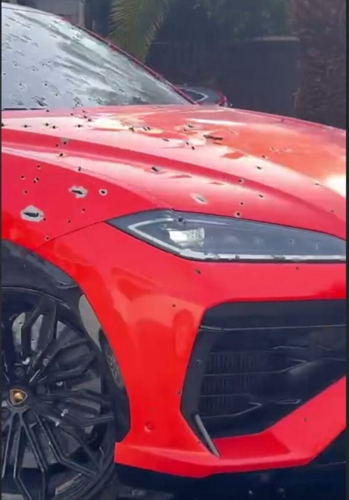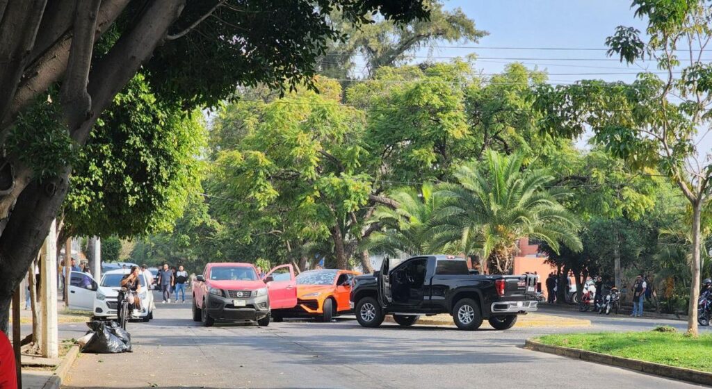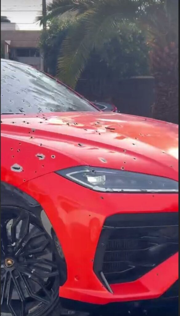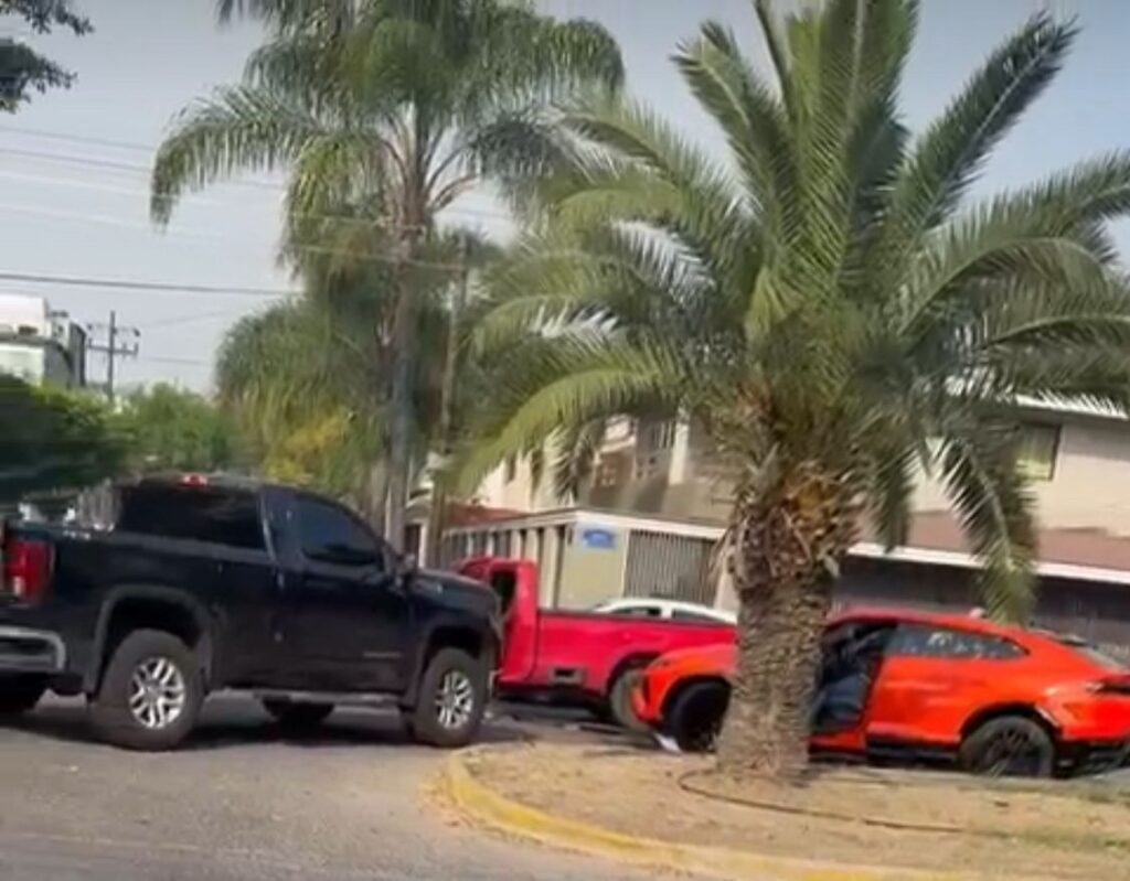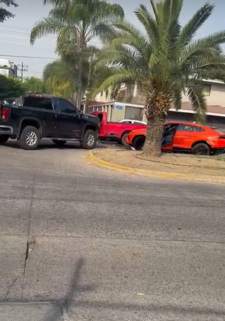 En el sitio quedaron con impactos de bala una camioneta Lamborghini Urus, de color naranja, escoltada por una camioneta GMC Yukon, de color negro y en las inmediaciones los cuerpos sin vida de dos varones.