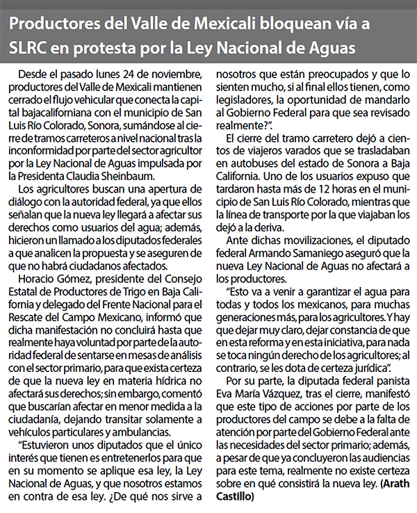 El conflicto ha generado fricciones políticas y legales, mezclándose con la oposición a políticas federales clave, como la reforma a la Ley General de Aguas, ante la cual agricultores de Chihuahua protestaron, temiendo que la nueva ley les impida la transferencia de concesiones de uso de agua para riego entre familiares; los productores de Guanajuato también se declararon preocupados y desesperados si la ley no se modifica, ya que quedarían “desprovistos de toda capacidad hídrica”.