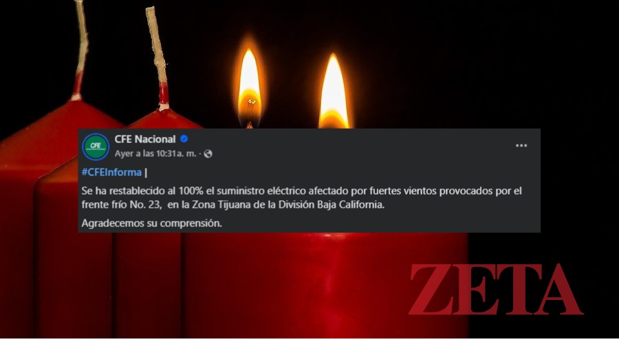 A las 10:00 de la mañana del 25 de diciembre, la CFE publicó y celebró su logro: “Se ha restablecido al 100% el suministro eléctrico afectado por fuertes vientos provocados por el frente frío No. 23, en la Zona Tijuana de la División Baja California”, afirmación que fue refutada con más de dos mil comentarios de usuarios que denunciaron colonias donde el servicio seguía sin restablecerse.