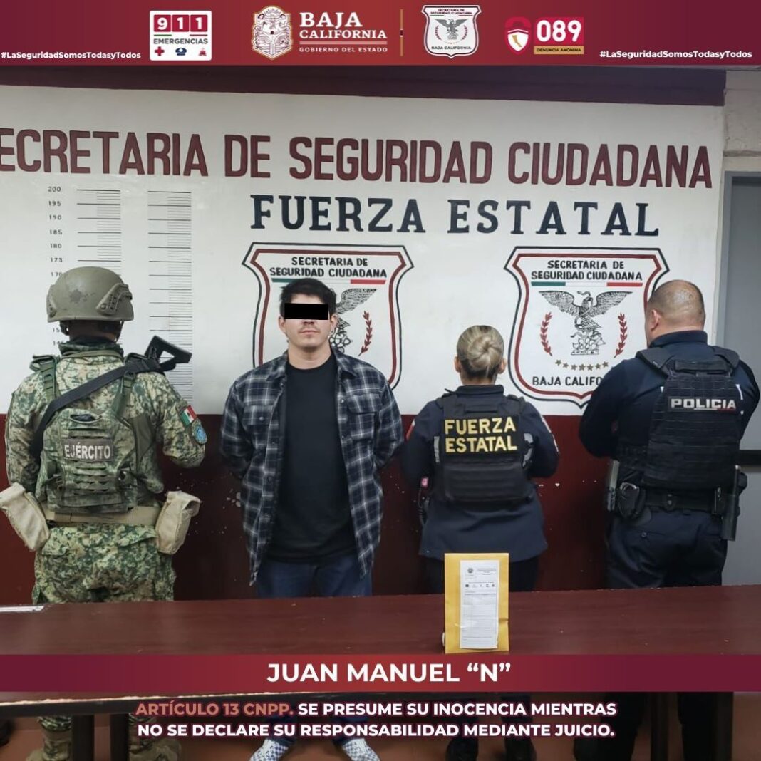 Detienen a un integrante de un grupo dedicado a la venta y distribución de droga en la capital de Baja California, tras un operativo realizado por elementos de la Fuerza Estatal de Seguridad Ciudadana.