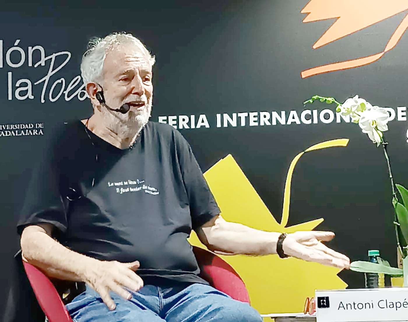 El reconocido poeta catalán Antoni Clapés fue una de las figuras estelares que se presentó en el Salón de la Poesía durante la edición número 39 de la Feria Internacional del Libro de Guadalajara, que se celebró del 28 de noviembre al 7 de diciembre en Expo Guadalajara.