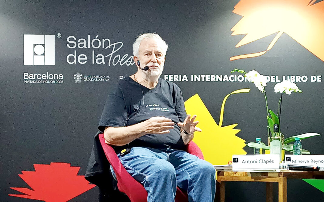 El reconocido poeta catalán Antoni Clapés fue una de las figuras estelares que se presentó en el Salón de la Poesía durante la edición número 39 de la Feria Internacional del Libro de Guadalajara, que se celebró del 28 de noviembre al 7 de diciembre en Expo Guadalajara.