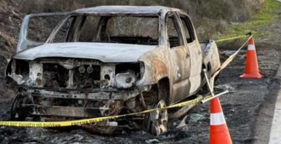 Agentes de la Guardia Nacional atendieron un reporte en el tramo carretero Ensenada–Tijuana, a la altura del kilómetro 86, conocido como La Cuesta del Tigre, donde se registraba el incendio de una camioneta Toyota Tacoma.