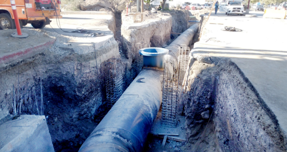 La obra de sustitución de 250 metros de tubería registra 85 por ciento de avance, pero, ante los inconvenientes que pudieran presentarse durante las festividades decembrinas, la obra será suspendida hasta la segunda semana de enero de 2026, cuando la Comisión Estatal de Servicios Públicos de Tijuana (CESPT) anuncie la fecha de un corte de agua por 50 horas para 635 colonias de Tijuana.