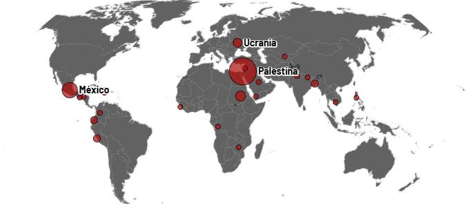 El informe documenta que América Latina concentra el 24 por ciento de todos los periodistas asesinados en el mundo, fenómeno que RSF denomina como “mexicanización” de la región. Solo dos periodistas extranjeros fueron asesinados fuera de su país: el fotoperiodista francés Antoni Lallican, ultimado por un ataque con drones rusos en Ucrania, y el periodista salvadoreño Javier Hércules, asesinado en Honduras, donde residía desde hacía más de diez años.