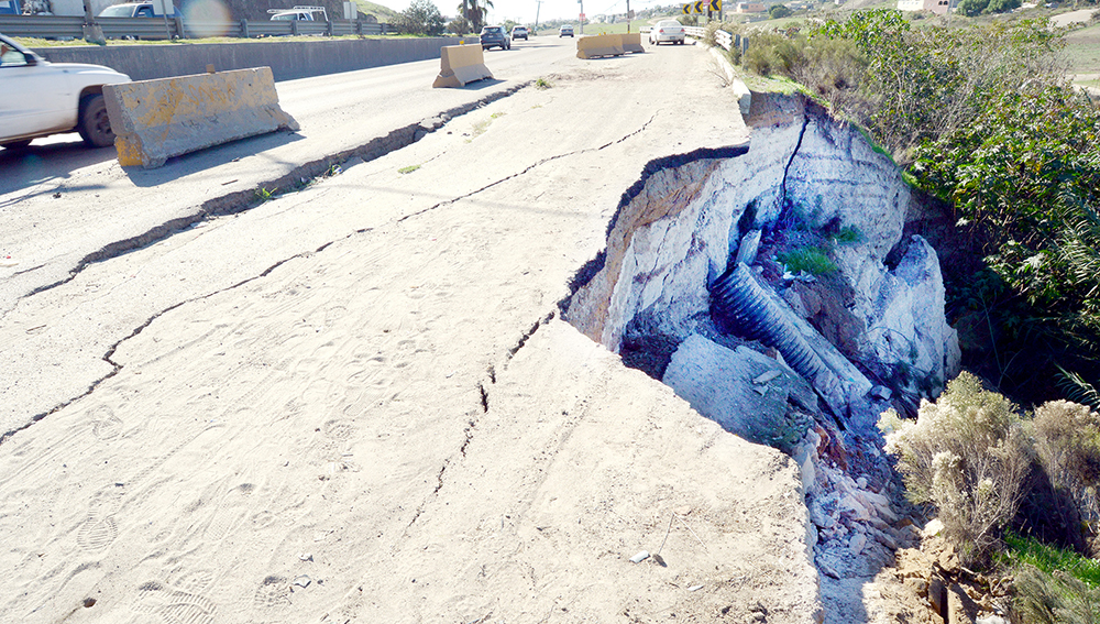 Además mencionó que los socavones registrados sobre el segundo acceso a Playas de Tijuana, a la altura de la calle Salvatierra, se originaron por una falla conjunta en las guarniciones que provocó un daño en el pluvial.