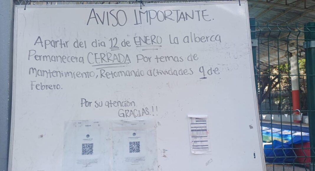 En el caso de la alberca, el IMDET -entonces a cargo de Luis Ángel Luna- señaló que los motores tenían desperfecto por un cortocircuito, pero para comprarlos tenían que esperar a que se liberara el recurso.