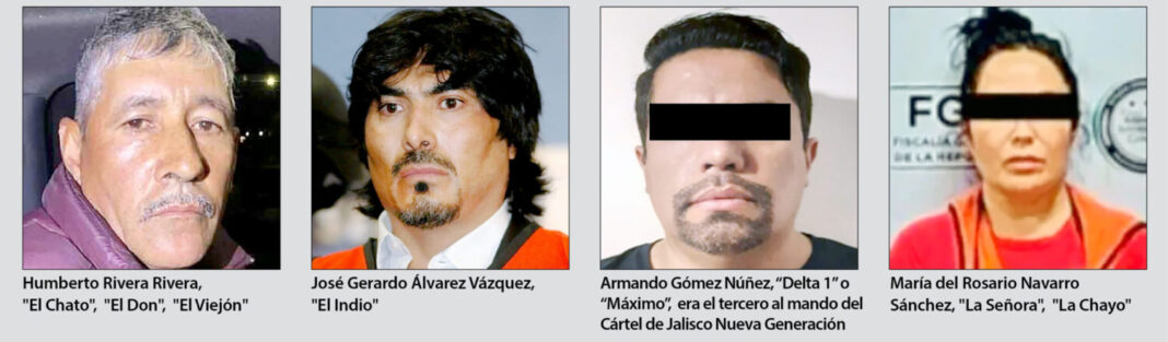El 18 de junio, la misma autoridad norteamericana sancionó por terrorismo a Nemesio y/o Rubén Oseguera Cervantes, el Mencho, líder del Cártel Jalisco Nueva Generación, y cuatro de sus principales lugartenientes, relacionados con hechos como el descubrimiento del Rancho Izaguirre de reclutamiento de jóvenes en Teuchitlán, y el homicidio de la joven youtuber Valeria Márquez. Por Oseguera existe una recompensa de 15 millones de dólares, una de las más altas, y por Audias Flores Silva, el Jardinero, otro ofrecimiento de cinco millones de dólares por su captura. También van por Julio César Montero Pinzón, el Tarjetas; Gonzalo Mendoza Gaytán, el Sapo; y Ricardo Ruiz Velazco, el Doble R.