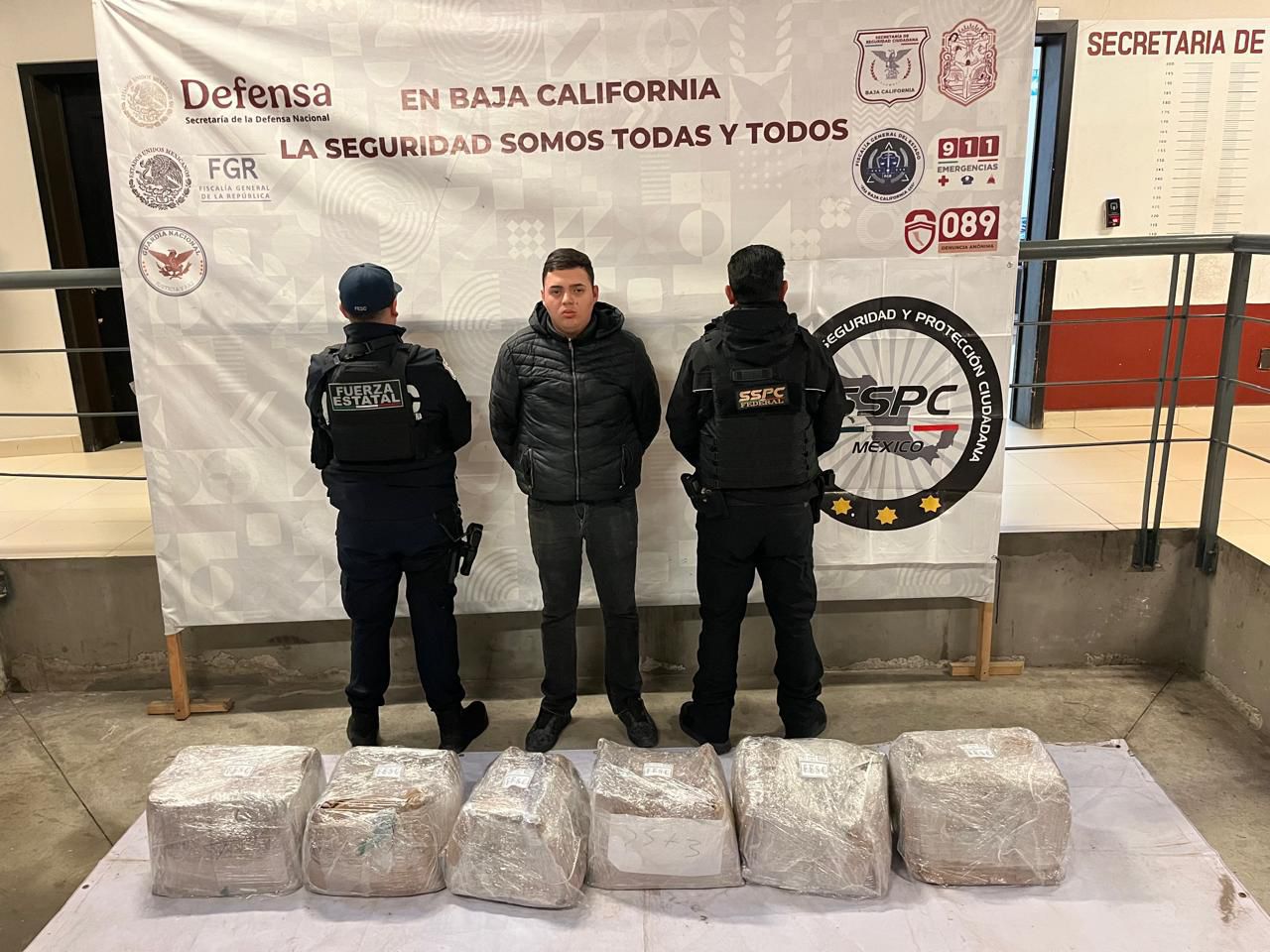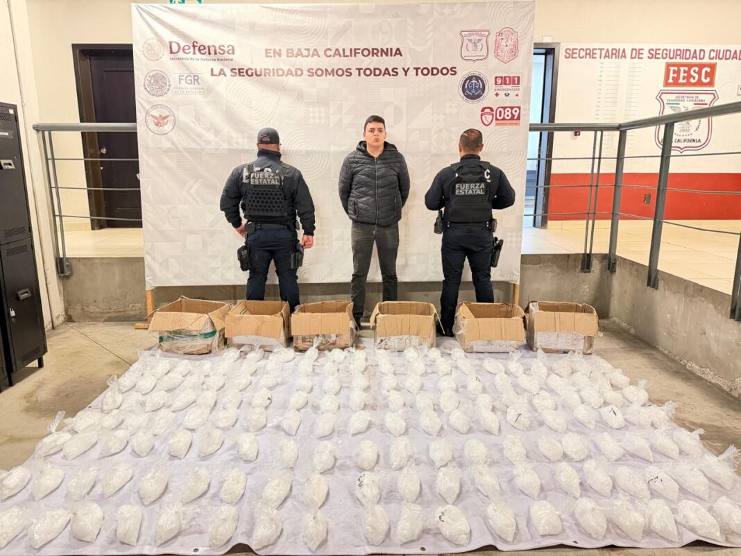 Un hombre, identificado como Jesús Roberto Ornelas López, de 21 años, que circulaba en un automóvil Versa, color negro, fue detenido por presuntamente llevar 72.3 kilogramos de metanfetaminas en calles de la colonia Castro, en Tijuana.