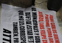 El mensaje amenazante fue colocado a las afueras de una caseta ubicada en el fraccionamiento Villas del Sol, en Mexicali.
